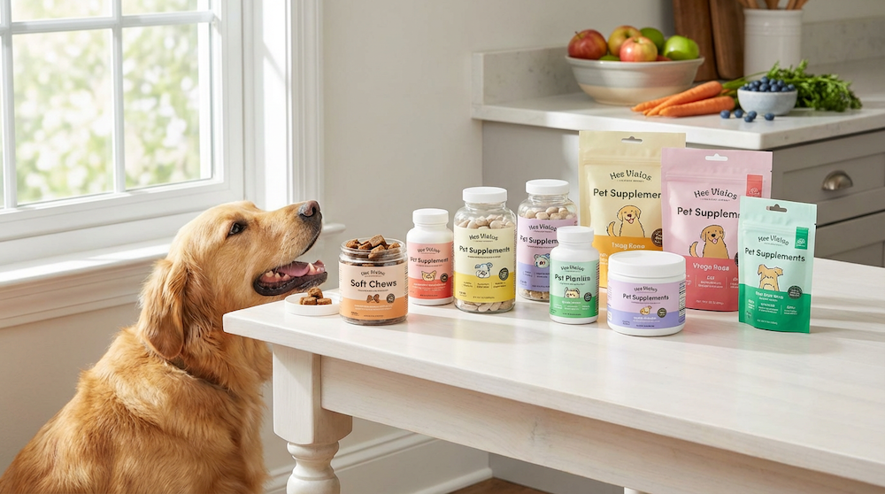 💡 ヒント: これらは海外製品の参考例です。日本では動物病院専売のサプリメント(アンチノールなど)も高品質で信頼性が高いとされています。愛犬に最適なサプリメントは、獣医師に相談して選びましょう。